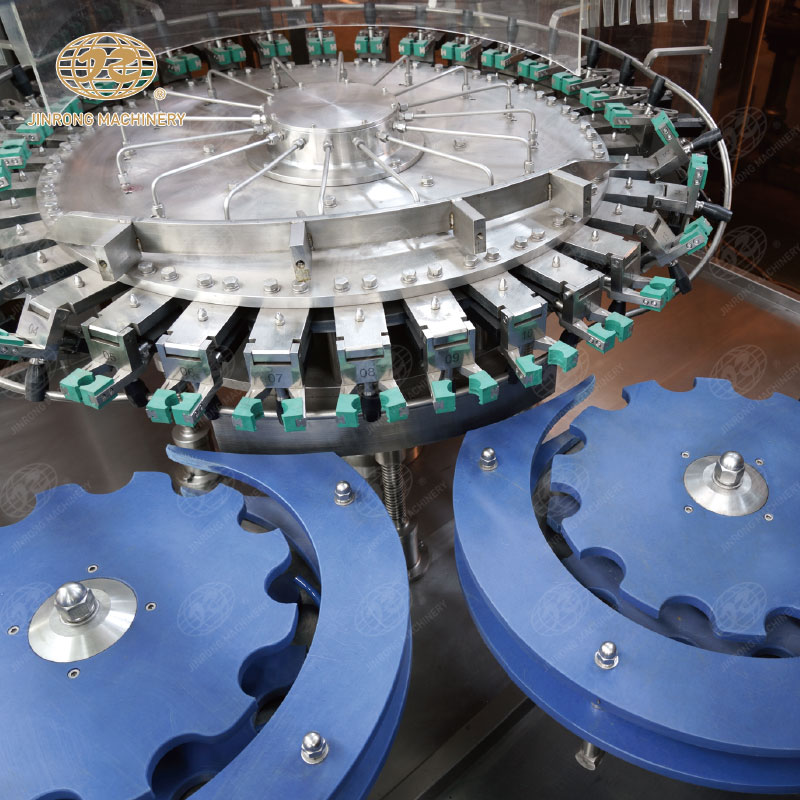 三合一含汽飲料灌裝機(jī)集清洗、灌裝、旋蓋于一體的灌裝設(shè)備,成套飲料生產(chǎn)線(xiàn)適合汽水、可樂(lè)、蘇打水、氣泡水等。玻璃瓶含汽飲料灌裝機(jī)組內(nèi)部一次完成洗瓶、灌裝、封蓋三道工序,瓶子磨損小、傳動(dòng)準(zhǔn)確平穩(wěn)、瓶型更換便捷。