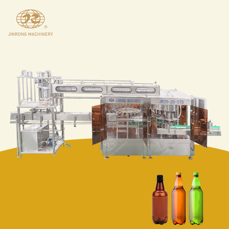 PET瓶啤酒灌裝生產(chǎn)線在灌裝前對PET瓶進(jìn)行沖洗,以去除瓶內(nèi)的雜質(zhì)和殘留物,確保啤酒的純凈度和口感。