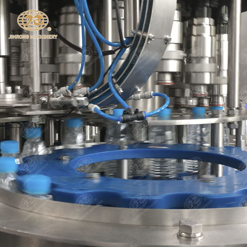 瓶洗凈系統是為了確保灌裝的水瓶在衛生條件下運輸和存儲。該系統會先對瓶體進行外表清洗,然后送入高壓噴洗區,利用噴嘴對內部進行高壓清洗,同時還有漂洗、消毒等步驟,最終保證瓶子的潔凈度和無菌性。